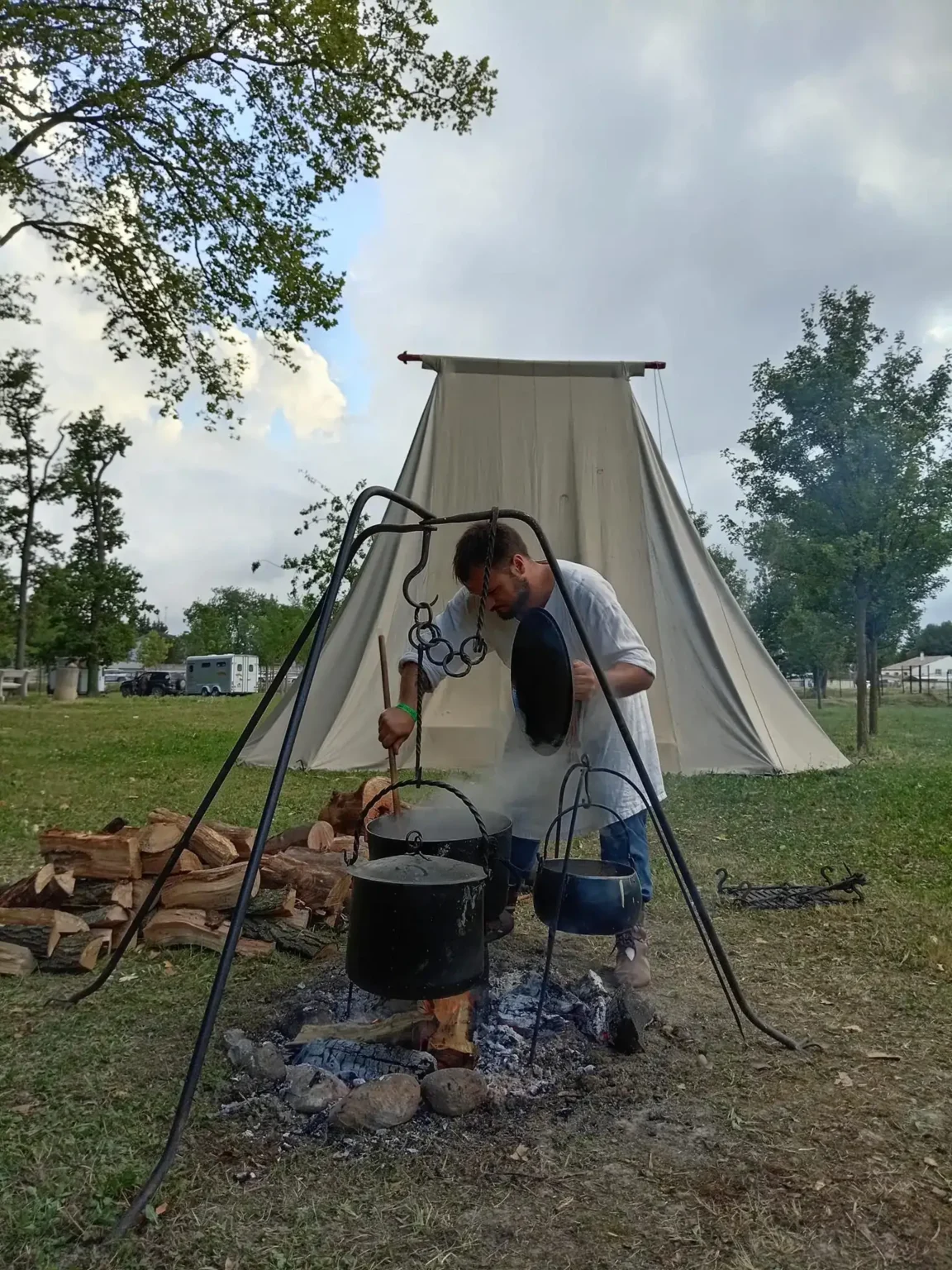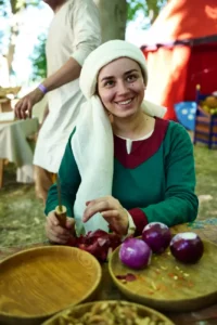Sur notre campement, nos cuisiniers œuvrent pour nous offrir toute une palette de saveurs et de couleurs. Le public peut voir l’élaboration de plats occidentaux ou orientaux des XIIème et XIIIème siècle, poser des questions et découvrir toute la richesse de la cuisine médiévale.