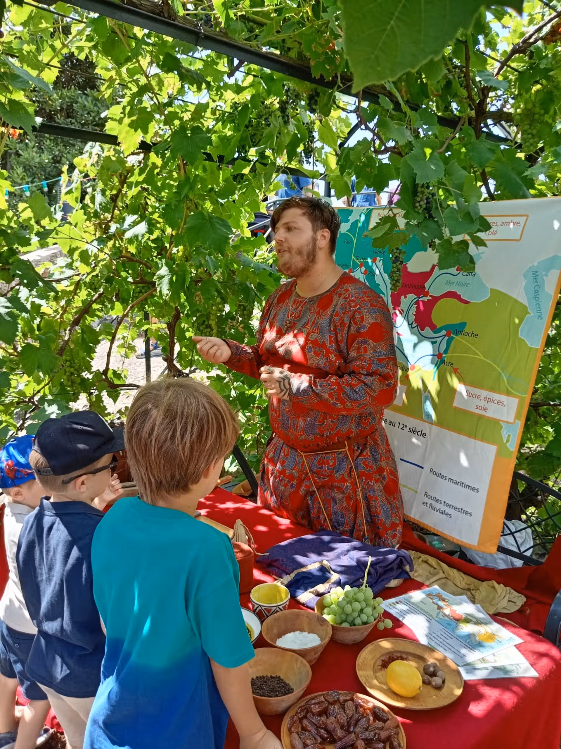 Léo vous plongera dans les réalités du commerce international au XIIème siècle. La route de la soie, le commerce maritime, les différents produits, les modes de transport seront abordés de façon ludique et accessible. Vous pourrez toucher les produits et vérifier la qualité de la soie ou l’intensité des épices!